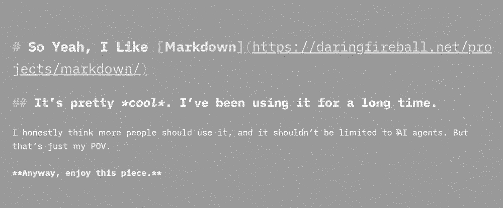 Jon is a smart guy and follows this stuff closer than me (Coywolf News is a great site), but I will casually defend this push towards Markdown as a lingua franca of the Web. (Not the agentic Web. Just the Web. More on that later.) I actually think it’s really a great move for publishers that comes with way fewer inherent issues than Google AMP ever did.